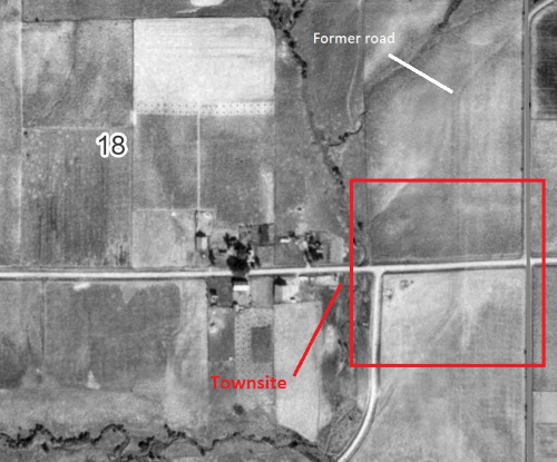 County atlases depict the town as a few blocks running along the railroad alignment, which was the Chicago, Rock Island, and Pacific railroad in 1905. The town also was situated along a local road that ran diagonally northwest to southeast. Two additions had been made to the town by 1894. Shown along the railroad siding were the depot, lumber and coal storage, two scale houses, a warehouse, two elevators, and a stockyard. The local post office and a hotel also were present. Among the businesses were the German Saving Bank, opera house, two saloons, a blacksmith and harness shop, a farm implement and lumber company, and a separate hardware and lumber store. The H.O. Seifert Company opened a branch in the community. H.O. Seifert sold various wares and goods including coal, lumber, hardware, tile, and sun-proof paint.
