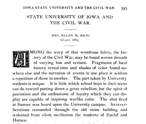 The next example comes from Iowa Historical Record, volume 15, number 1, page 395, which was edited by Frederick Lloyd, MD who served as a surgeon during the Civil War. Here we see Iowa State University and State University of Iowa on the same page.
