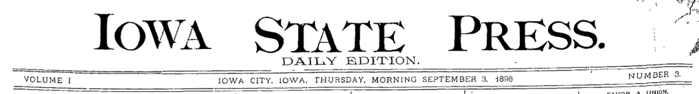 From 1868, the masthead of the student newspaper, the University Reporter, an 1868–1879 forerunner to the Daily Iowan, used Iowa State University. The Vidette, which began publication in January 1880, dropped the term.