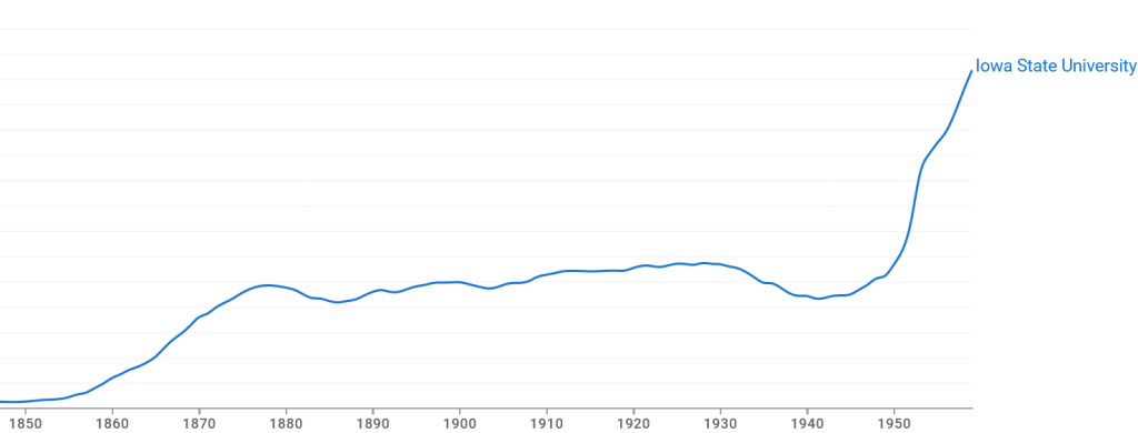 That’s not an error in the title. For many, this post will border on the unbelievable. Iowa State University is definitely not in Iowa City. But put aside your disbelief for the moment. This light-hearted post examines word choice through time for Iowa’s first two universities.