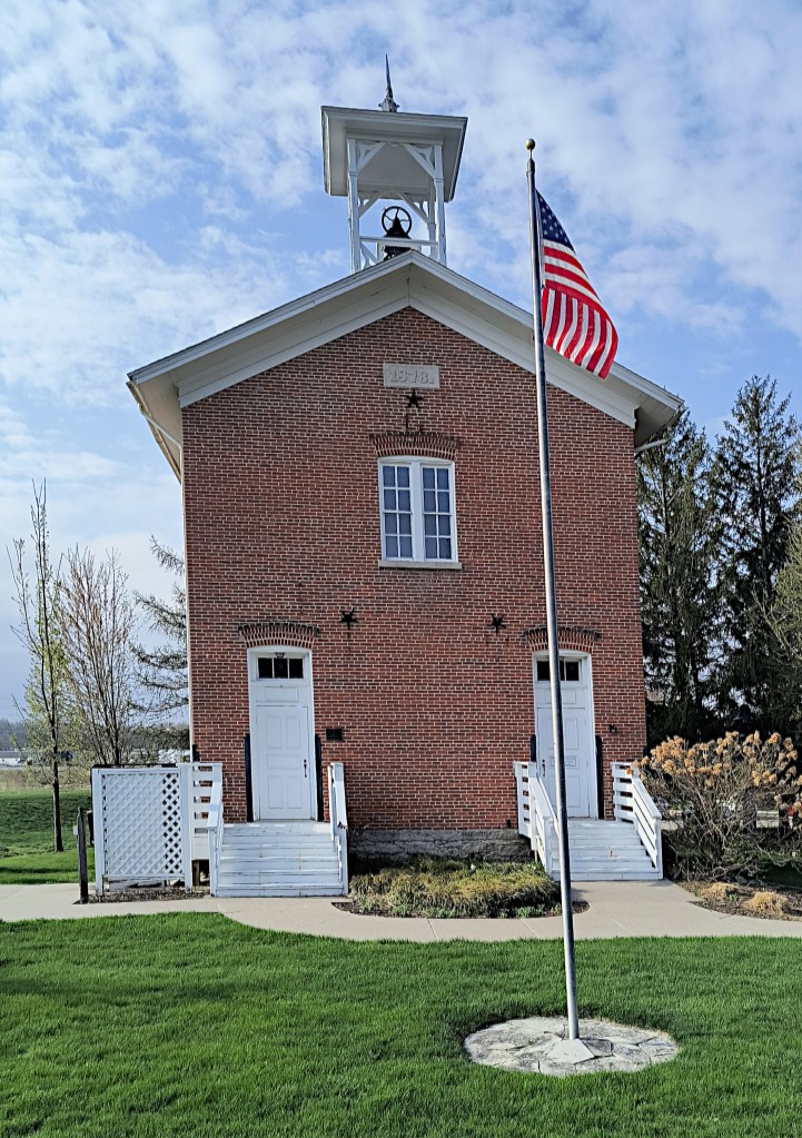A second existing building with the terminal dot convention is the 1876 Coralville Schoolhouse maintained by the Johnson County Historical Society. The date stone that reads “1876. ” is visible on the front face of the building above the second floor window.