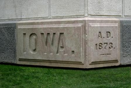 Meanwhile, the declarative period convention followed the state capitol to Des Moines. The current capitol building uses the full stop convention on the cornerstone both after the date and after the word “IOWA. ” The cornerstone was laid in 1873.