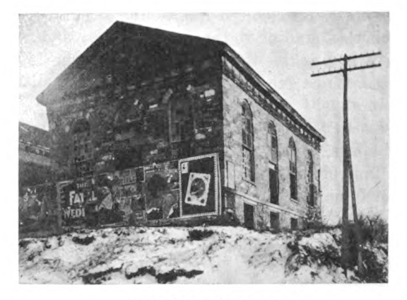 But since punctuation had yet to be invented it was absent from ancient Greek buildings. Incidentally, Romans did not use terminal dots in their inscriptions, either. With no precedent in either the original ancient Greek architecture or in Greek Revival architecture, a different explanation is required. In looking for an explanation, I tried to identify historic trends in cultural conventions in local architecture of the nineteenth century. I began by trying to find additional buildings that had also used a period or full stop at the end of an inscription. As it happens, there are a few examples that have been located in the course of researching this post. The first is a historical account that states a cornerstone was laid in 1841 on a church in Iowa City and it reportedly used the full stop format. The inscription on the lintel above the door is recorded as “Presbyterian. Erected 1845. ” (see Benjamin Shambaugh, The Old Stone Capitol Remembers, page 340). The building was the New School Presbyterian building, also known as the South Presbyterian Church, which was built even as the first phase of construction was going on at the Old Capitol. The building was likely built in part due to the Presbyterian schism following the Second Great Awakening that was about slavery as well as method of worship.