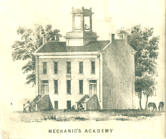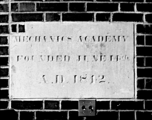 One example can be seen on the cornerstone of the Mechanics Academy building. The Inscription reads “Mechanics Academy / Founded June 14th / A. D. 1842. ” with the period included. The Mechanics Academy was built by the Mechanics Mutual Aid Association. The Iowa Territorial Legislature donated a school reserve in the capital city for the building. It was intend to host a school and library for the association, which was made up of tradespeople like carpenters, builders, masons, stone cutters and the like who were known collectively as mechanics at the time.