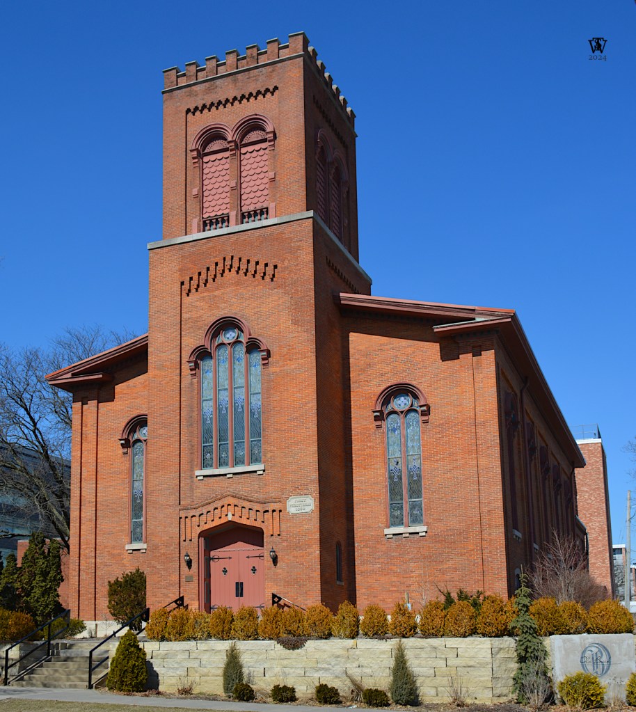 Construction of Old Brick began that same year but proceeded only slowly. This was caused by a number of factors including funding, labor, and materials shortages. The removal of the capital of Iowa to Des Moines in 1857 reduced the number of church members and social functions that were reported to occur as part of the Church. This would have reduced donations for construction costs. Further, the Civil War slowed the progress of construction. Labor shortages were as likely as materials shortages to have caused this. The war shifted the labor of craftspeople, likely all men, to the Army. Transportation constraints were also likely a problem. Rail and riverboat traffic were prioritized for the war effort. Nails, sheet metal, and stained glass had to be shipped to Iowa City from the same industrial centers that had retooled for making guns (cannon), side arms, ammunition and the like. Transportation was reassigned to moving troops, supplies, and relocating freed Black people to the upper Mississippi valley from the battlefront. Old Brick was finished just after the war ended with the dedication occurring in August 1865. It was not the first brick building in Iowa City, and is not by any stretch in the oldest of the community’s buildings. Several residences are older, dating to the 1840s and 1850s. But, Old Brick remains the oldest surviving church building and is worthy of preservation due to its architecture and association with events in Iowa City’s history.